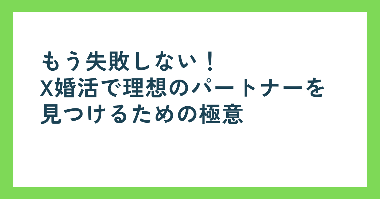 初めて婚活に挑戦する人も、すでに何度か経験がある人も――。大切なのは、結婚相手を探すうえで押さえておくべき注意点をしっかり理解することです。本記事では、“x婚活”で理想のパートナーに出会うために知っておきたいポイントや、つまづきやすい落とし穴を解説します。読んだその日からすぐに実践できるコツを、ぜひチェックしてみてください。